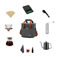 HIGHWIN Portátil Despeje Sobre Cafeteira Conjunto Tudo em 1 Saco PU Caixa De Presente De Café Conjunto para Casa Escritório Ao Ar Livre Camping
